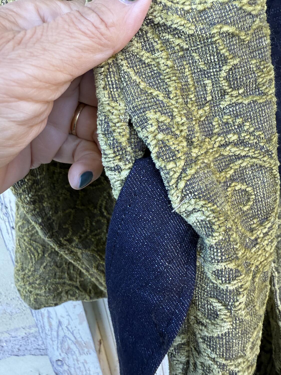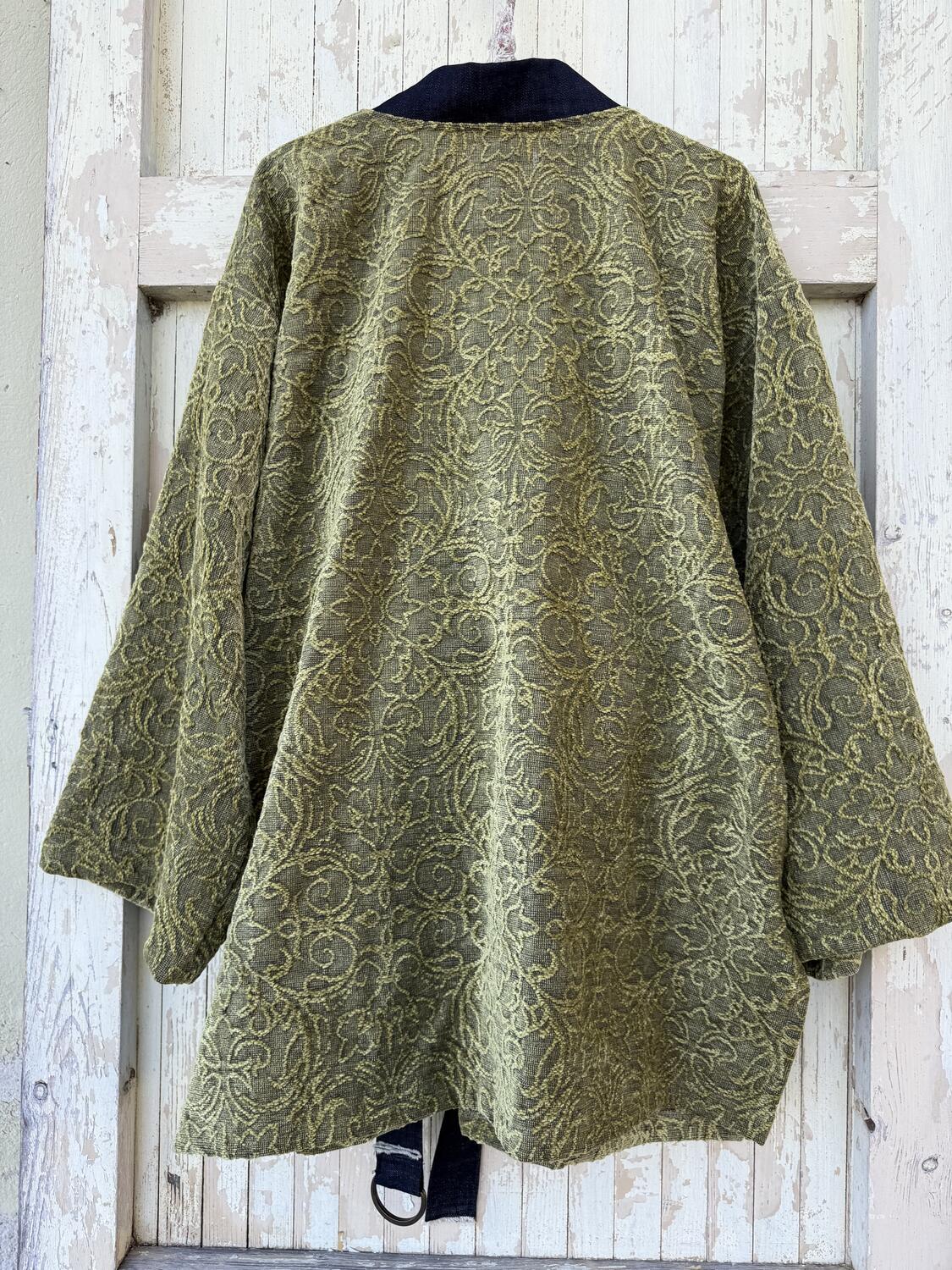 Kimono realizzato con tessuto di cotone a effetto velluto/ciniglia, con lavorazione a rilievo.