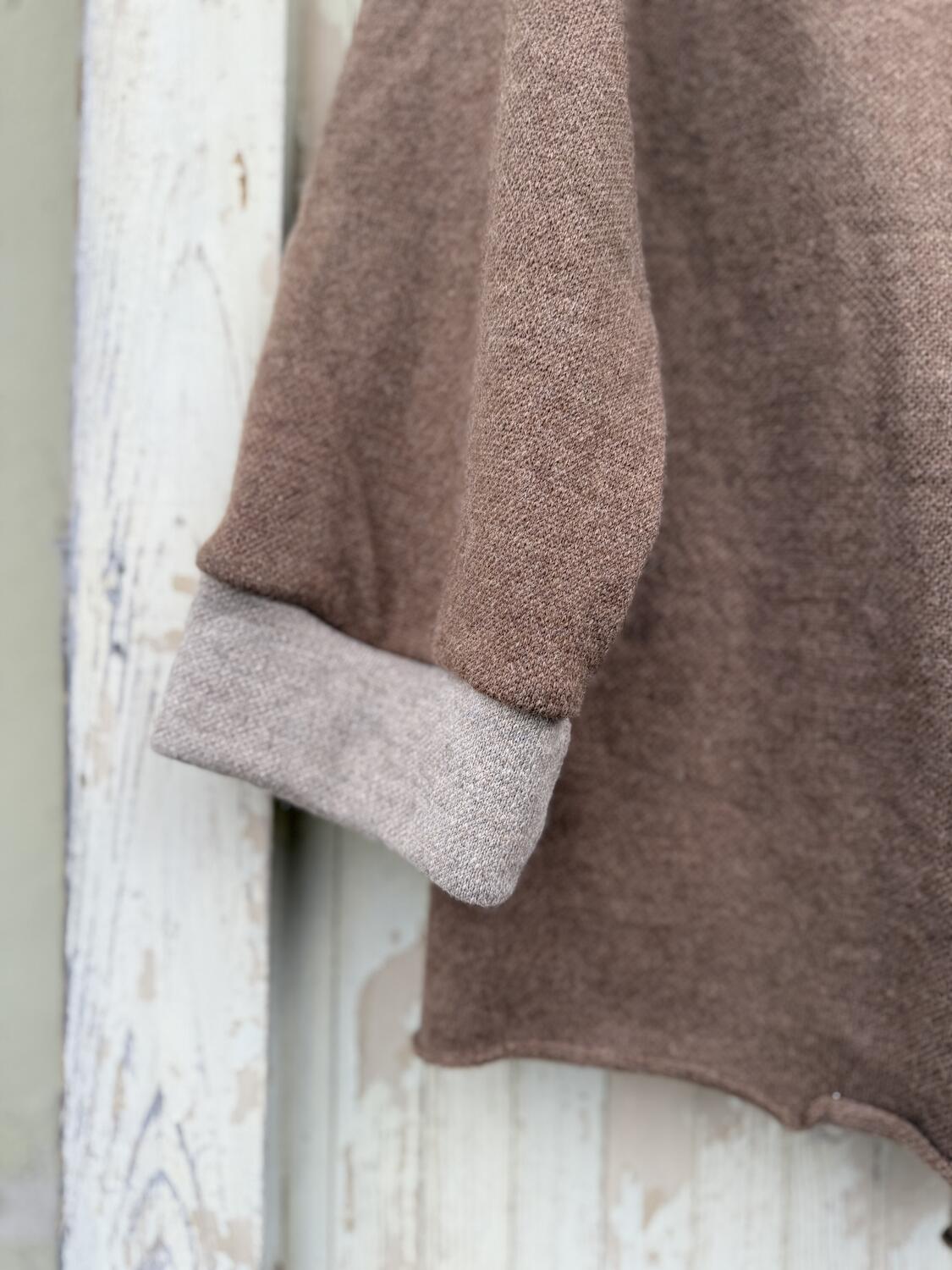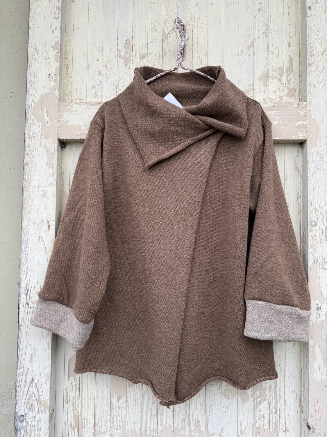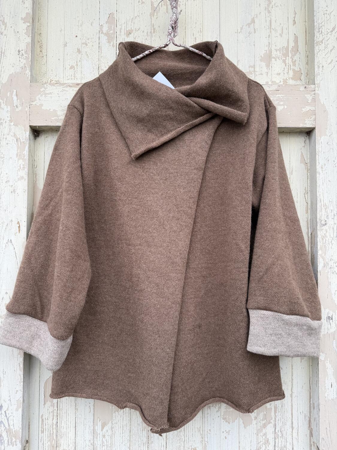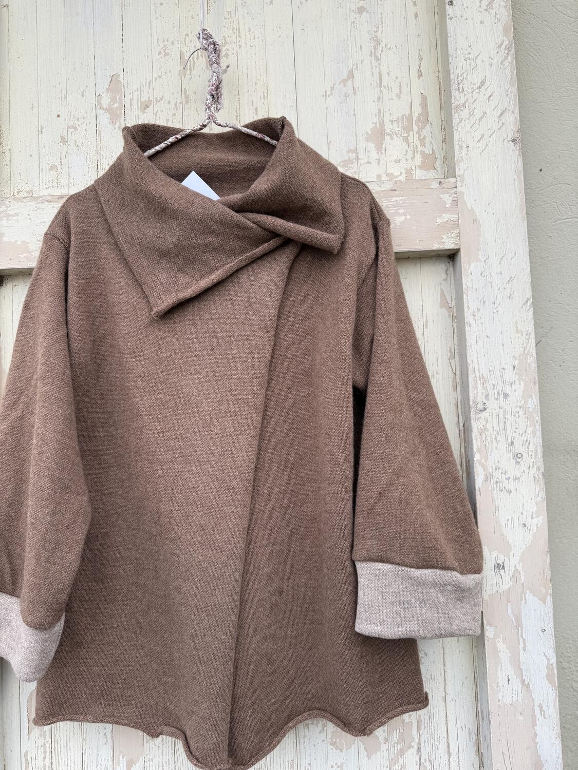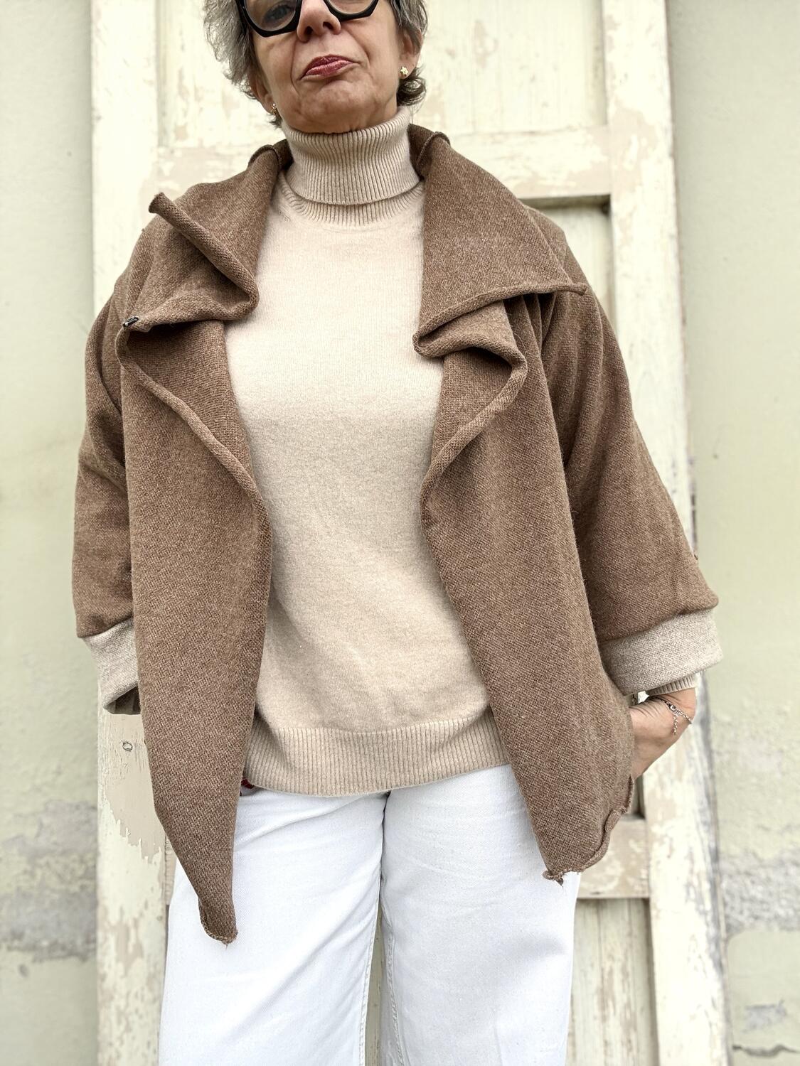 Taglio a vivo, due bottoni a pressione, perfetta come capo spalla nelle mezze stagioni e come cardigan nei periodi piu freddi.