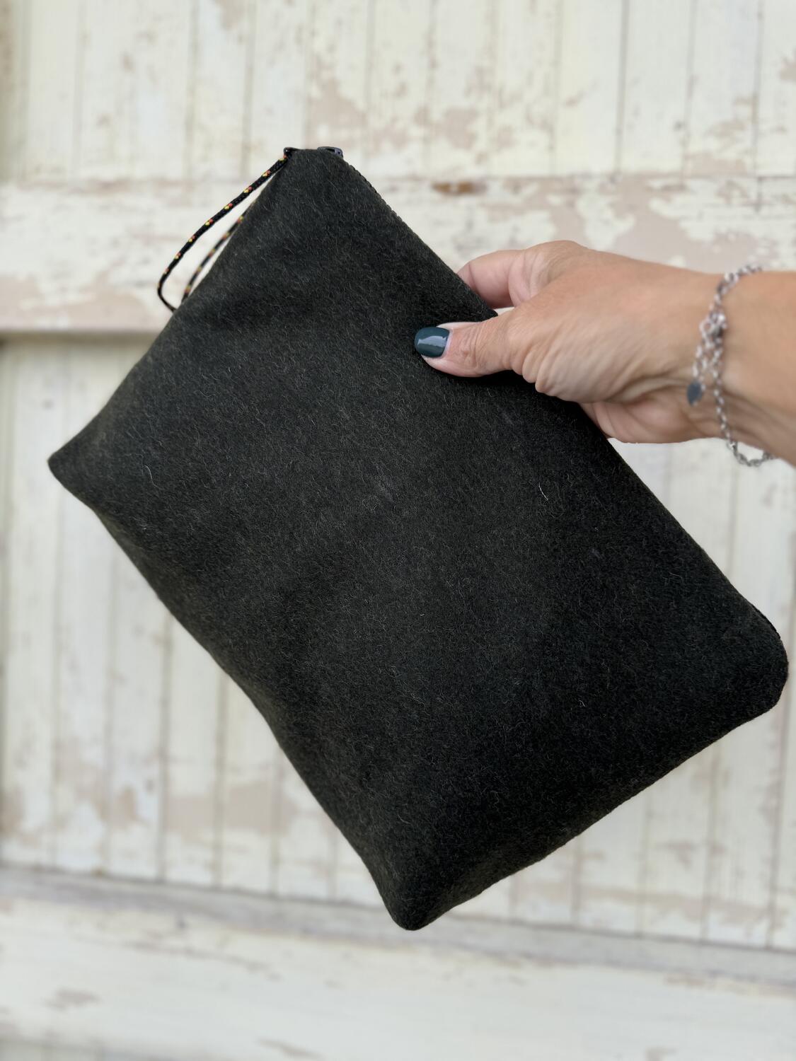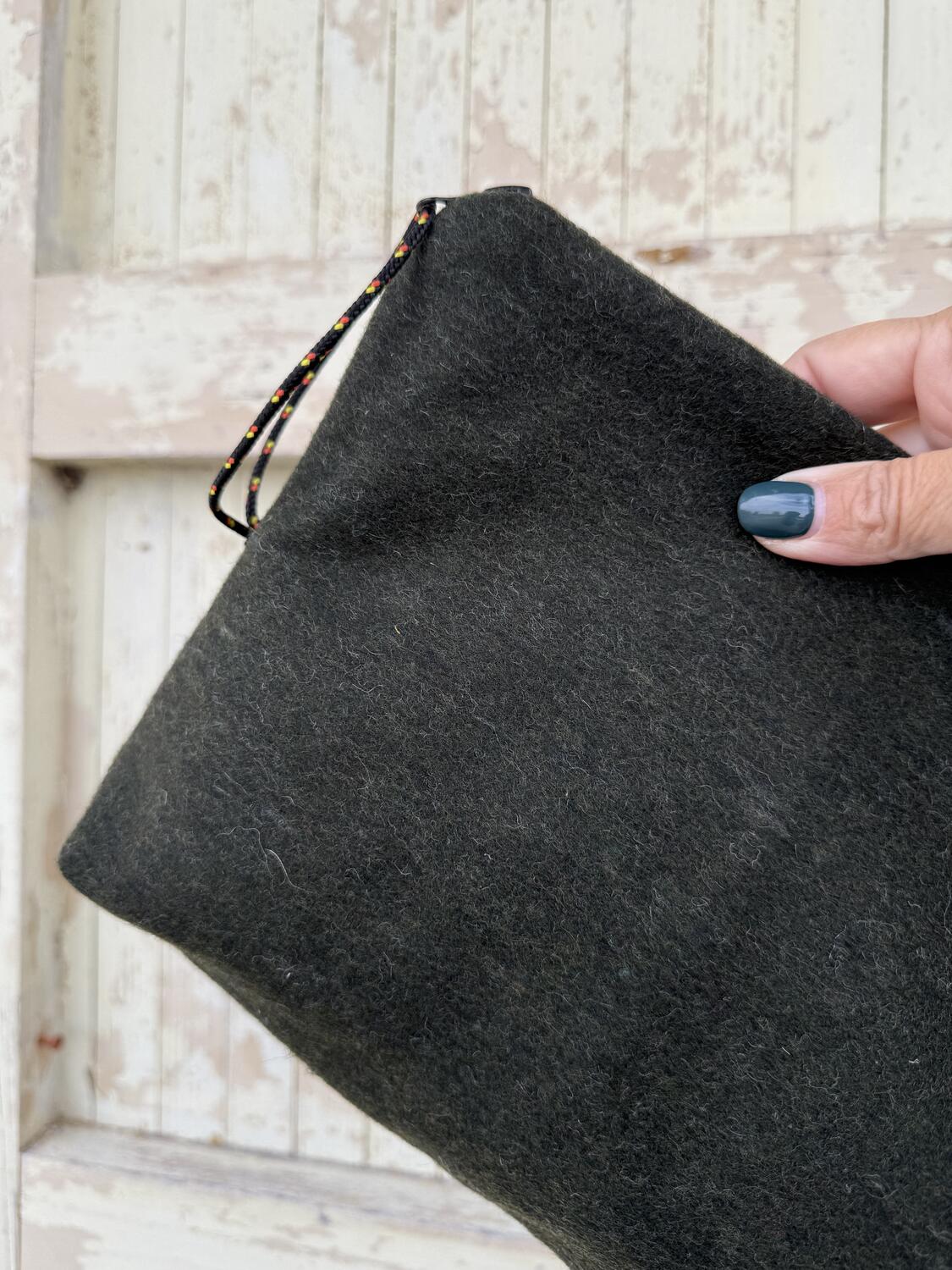Capiente e compatta, con cerniera e cordino per tenerla al polso.