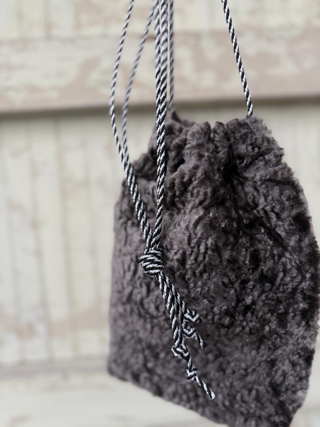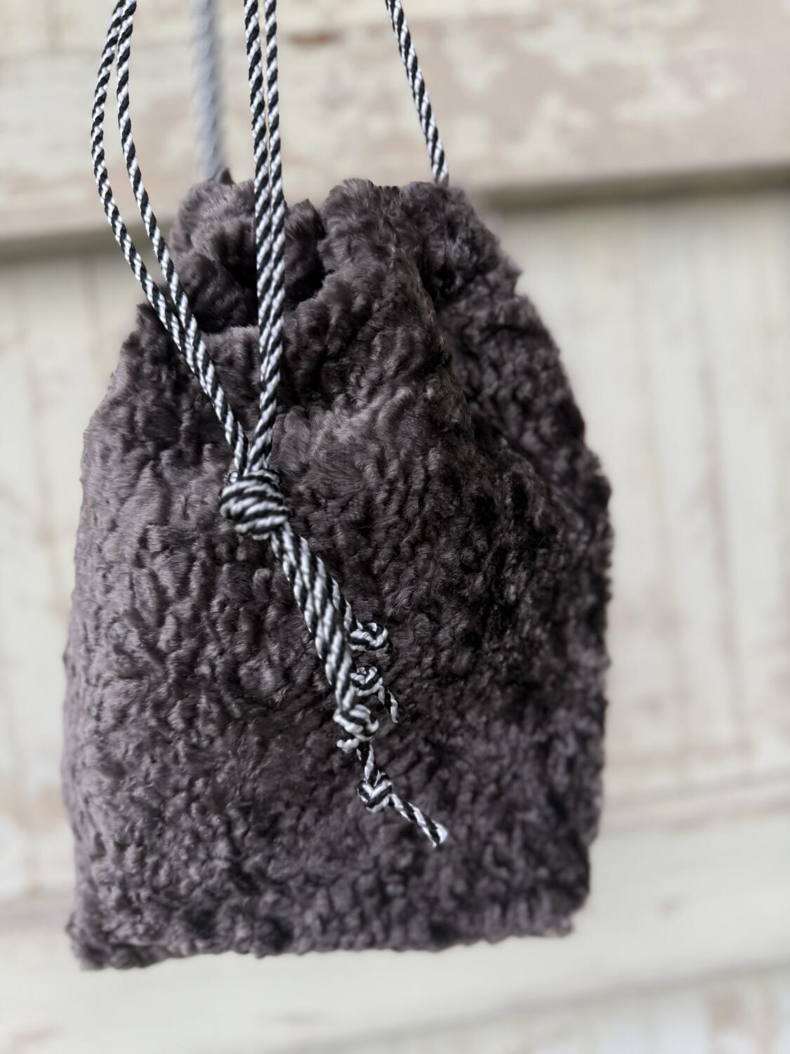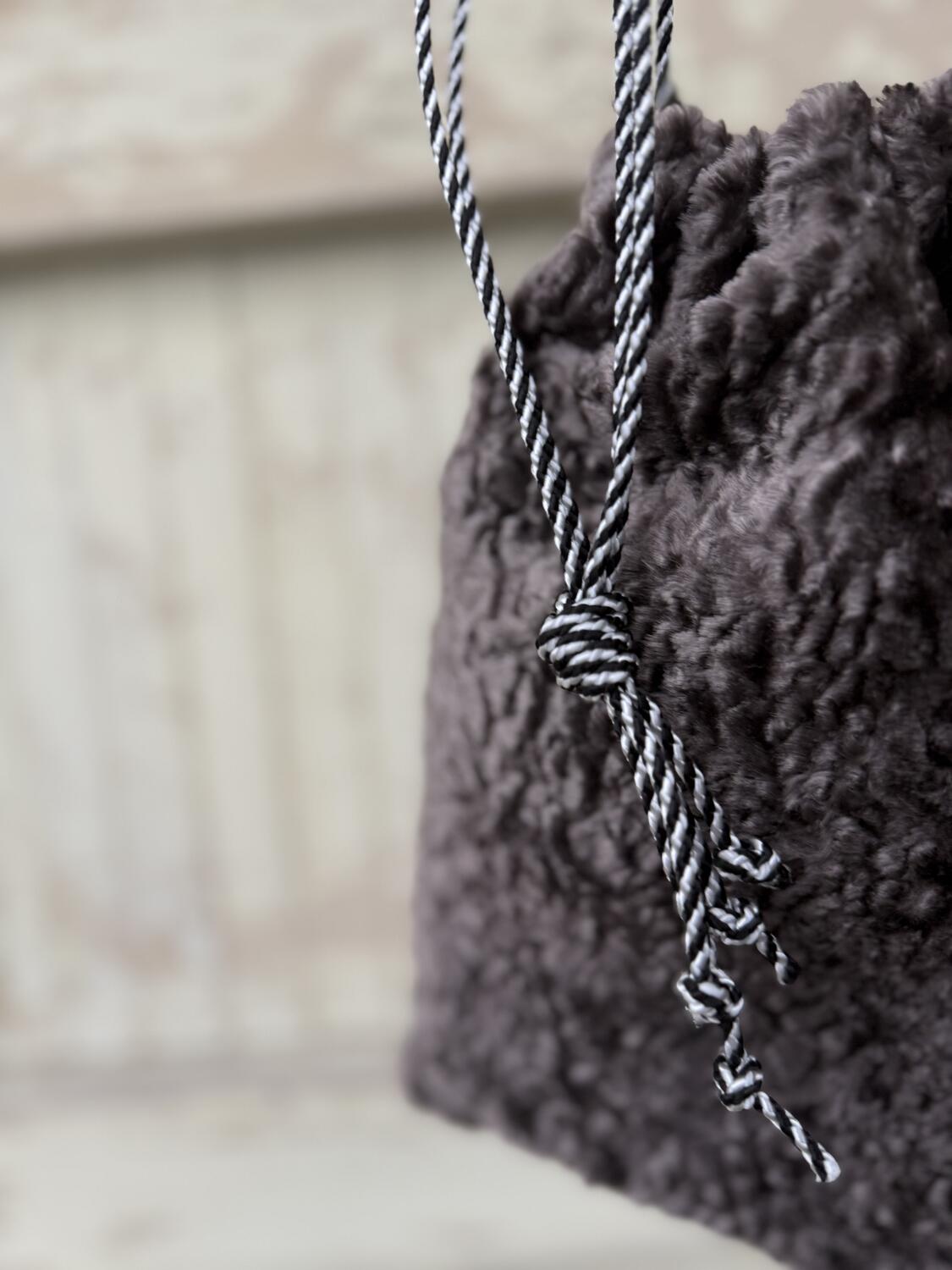 Piccola borsa a secchiello in pelliccia sintetica effetto astrakan