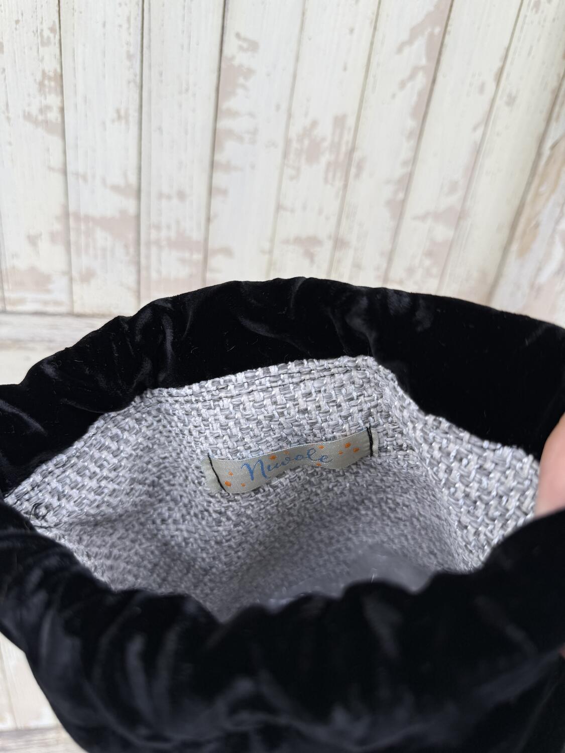 Piccola borsa a secchiello in un bellissimo velluto di pura seta, luminoso e bellissimo al tatto.