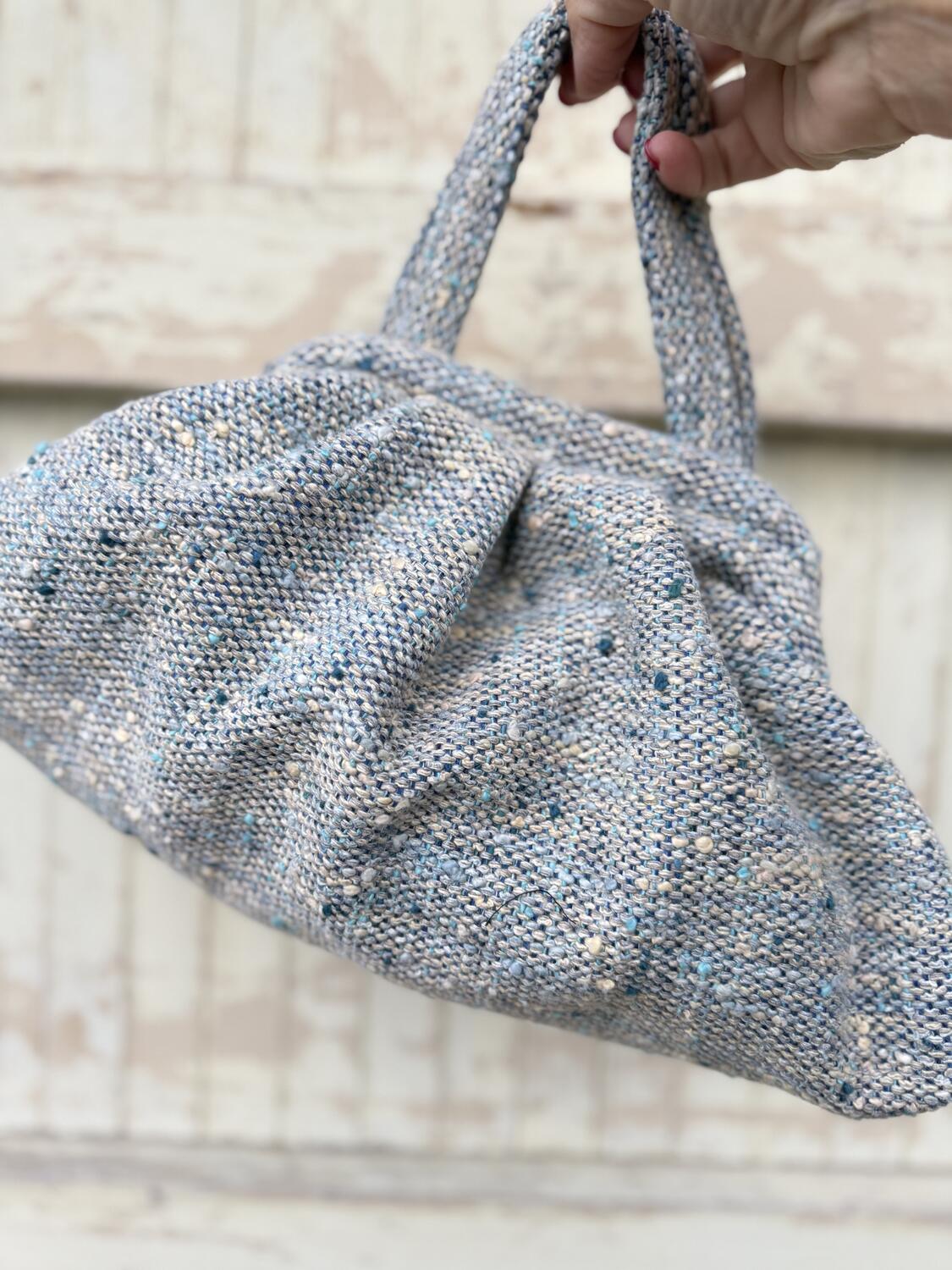 Ha all’interno due piccoli manici nello stesso tessuto che possono essere utilizzati o tenuti all’interno della borsa.