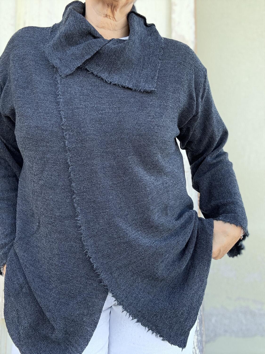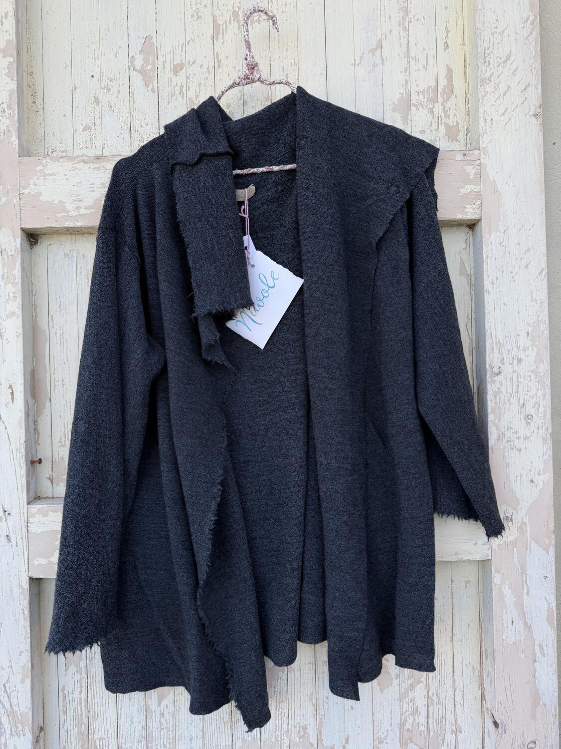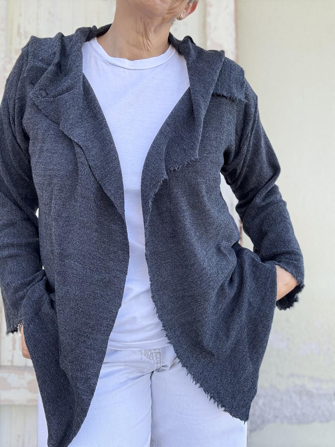 Taglio a vivo, due bottoni a pressione, perfetta come capo spalla nelle mezze stagioni e come cardigan nei periodi piu freddi.