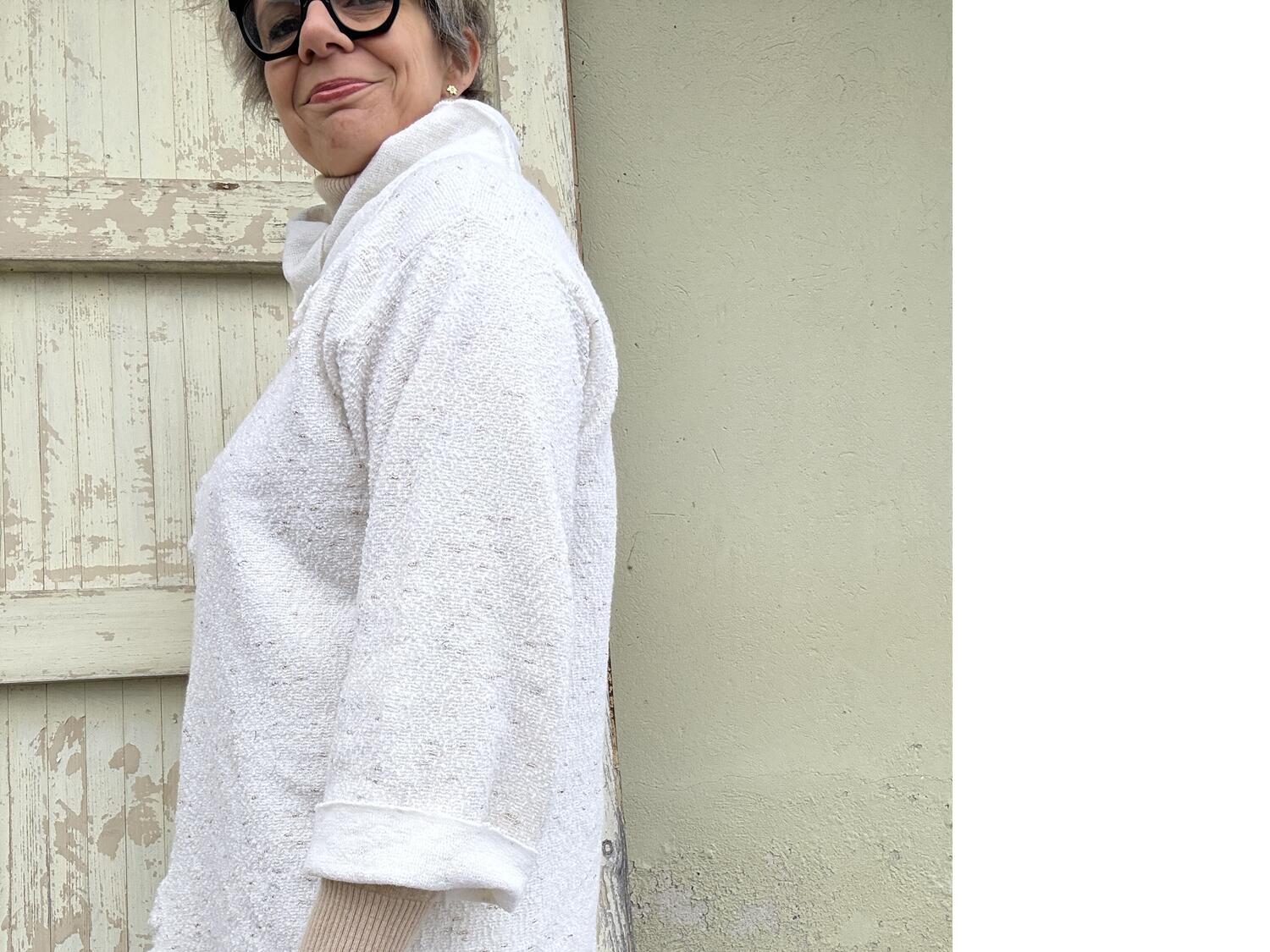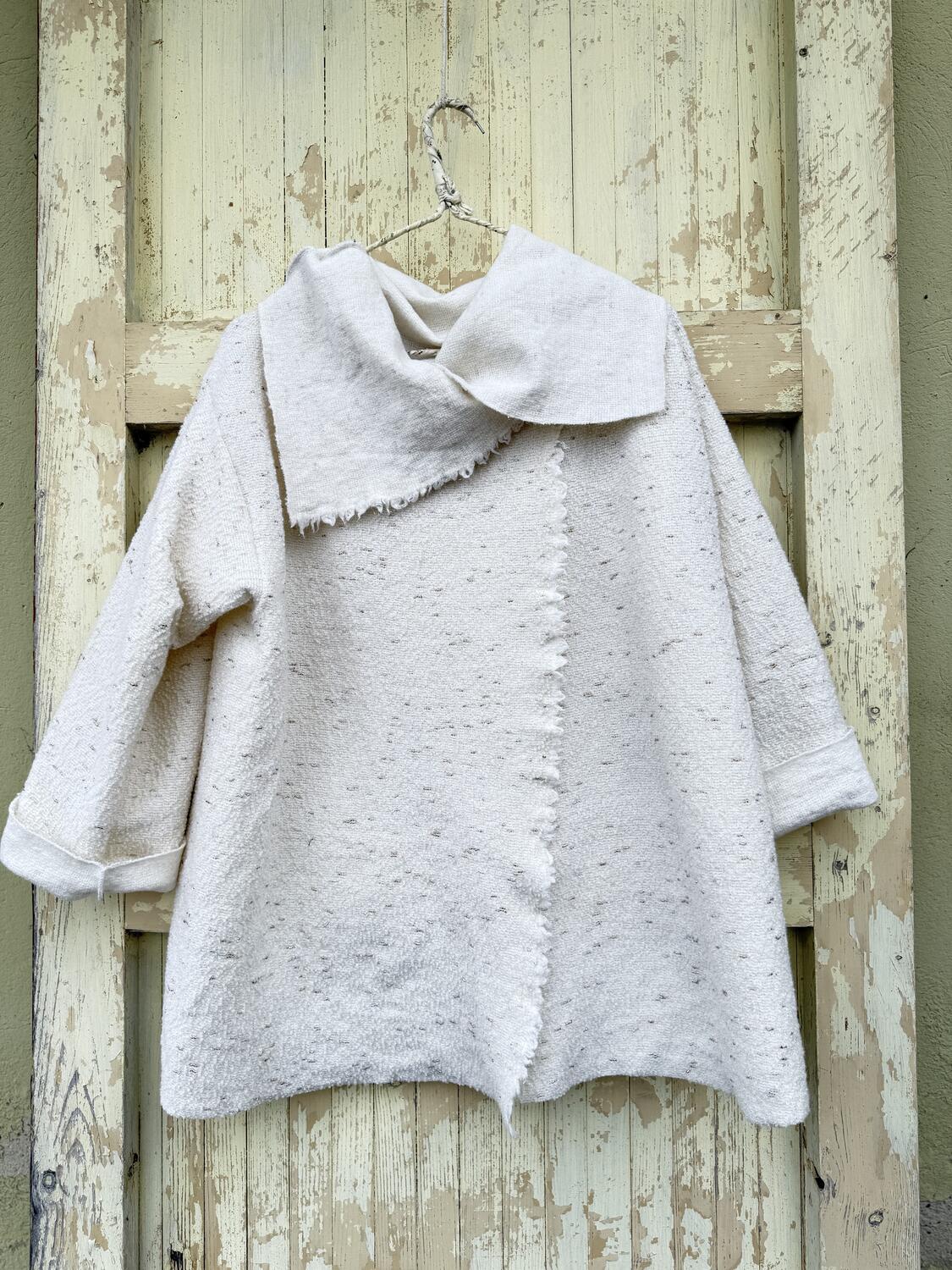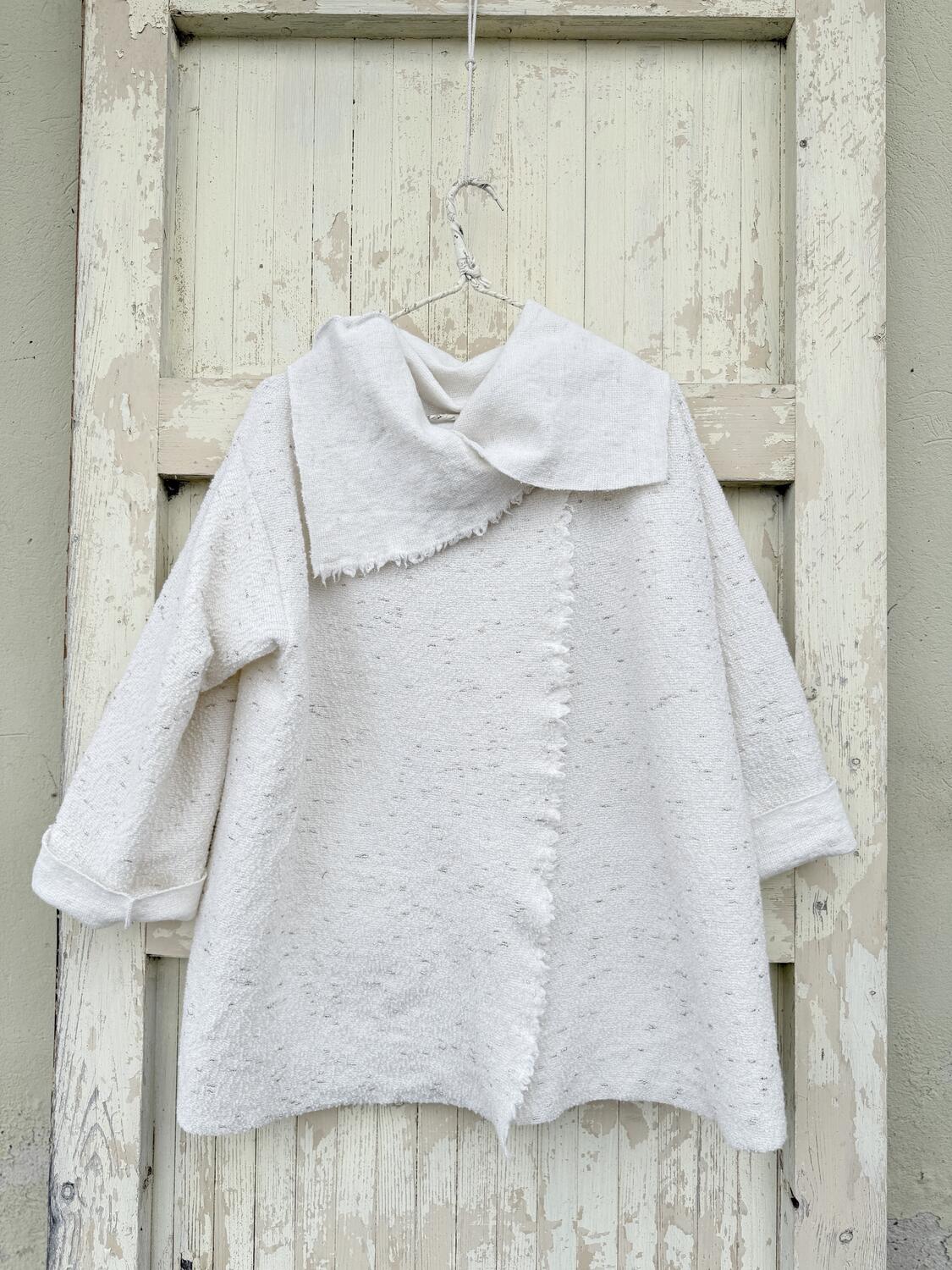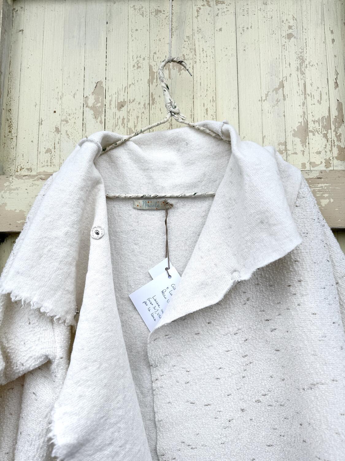 Taglio a vivo, due bottoni a pressione, perfetta come capo spalla nelle mezze stagioni e come cardigan nei periodi piu freddi.