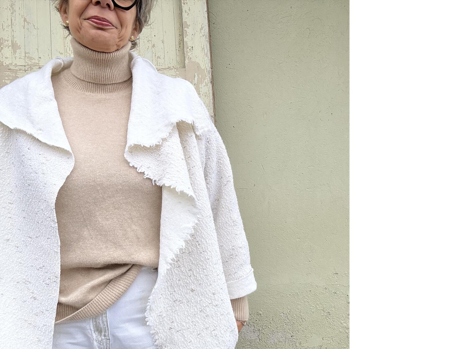 Giacca in lana, seta e piccoli dettagli in lurex oro e atgenuo