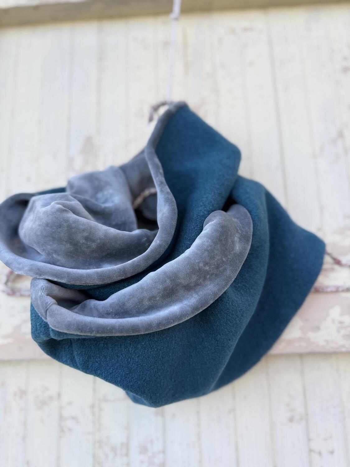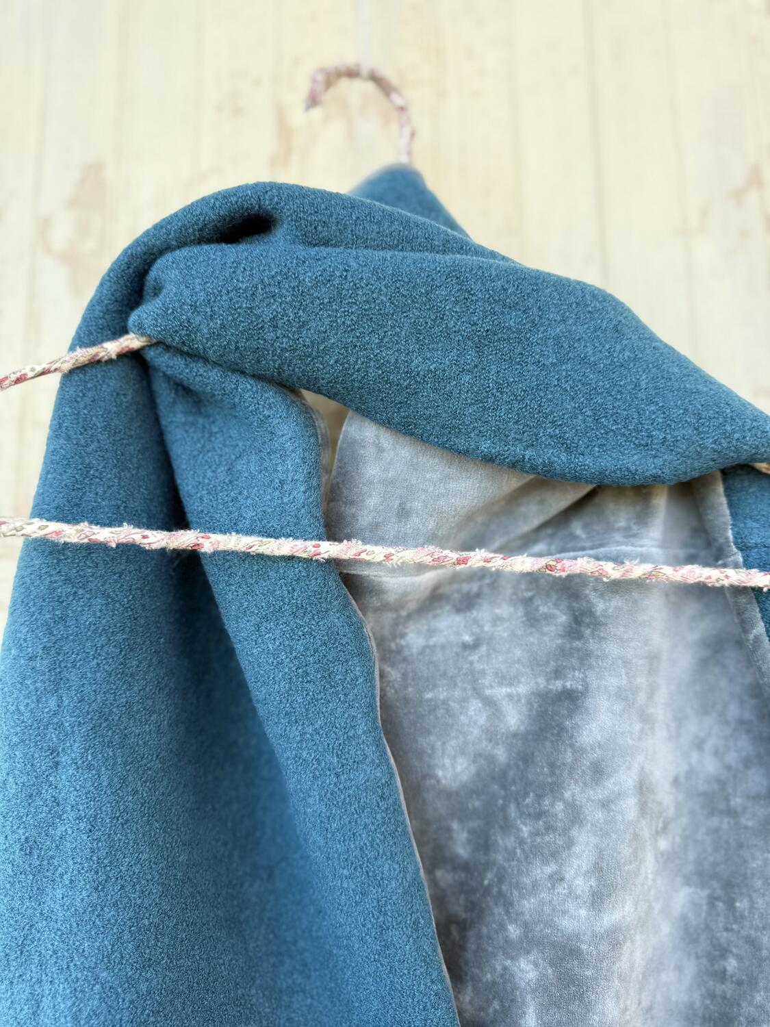 Questa sciarpa circolare è il risultato di una lavorazione attenta, dove la tradizione incontra la sensibilità contemporanea.