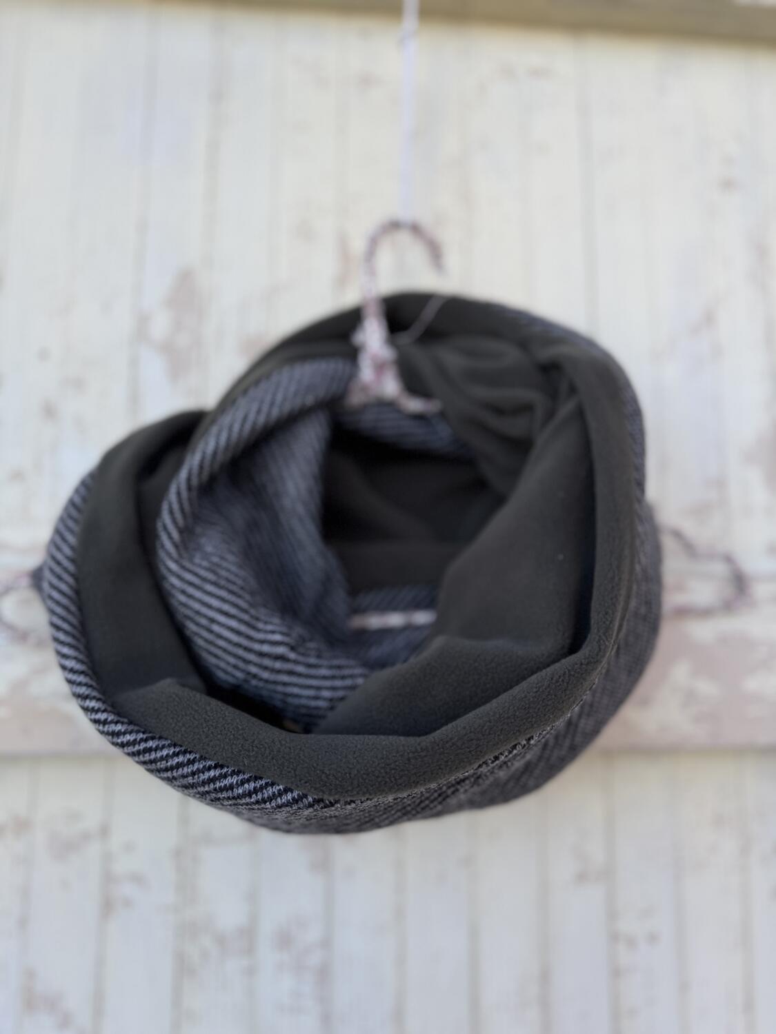 Questa sciarpa circolare è il risultato di una lavorazione attenta, dove la tradizione incontra la sensibilità contemporanea.