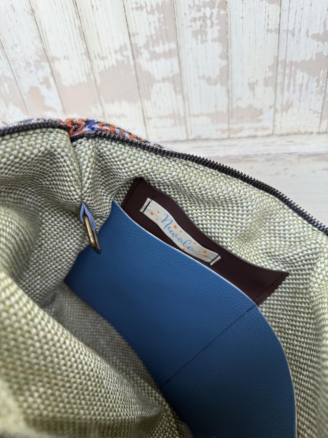 All’interno ci c’è una tasca portatessere, due tasche aperte e un anello sul lato, per agganciare le chiavi o altro.