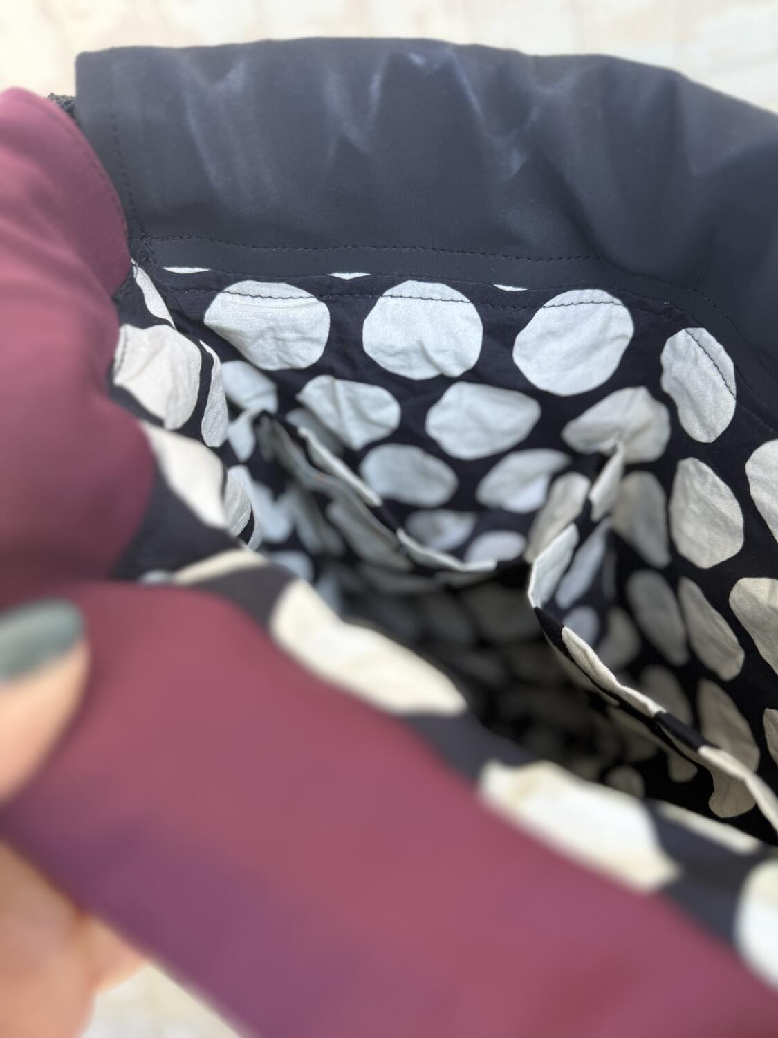 Ha una tasca esterna con cerniera e due tasche interne (aperte)