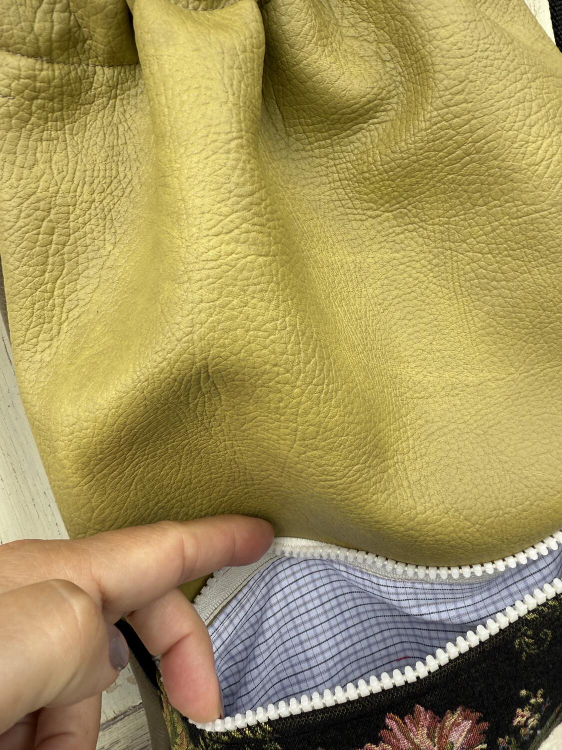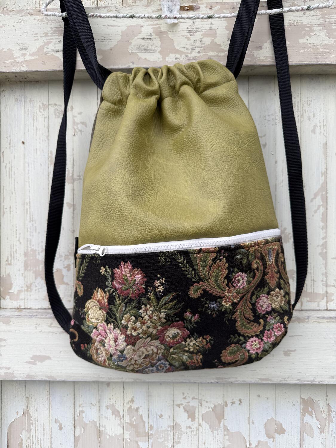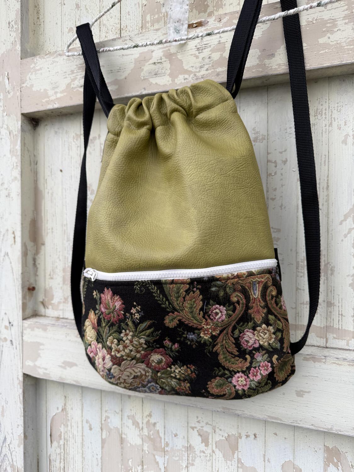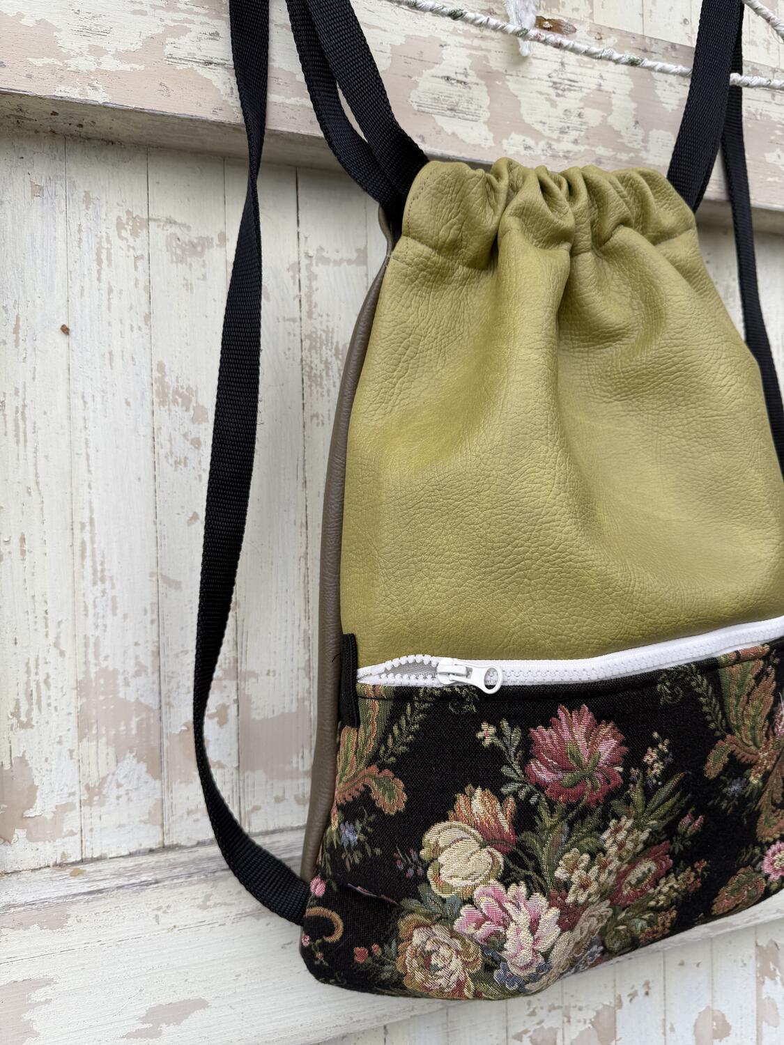 Lo zaino è realizzato con campionario d’arredo e similpelle d’arredo