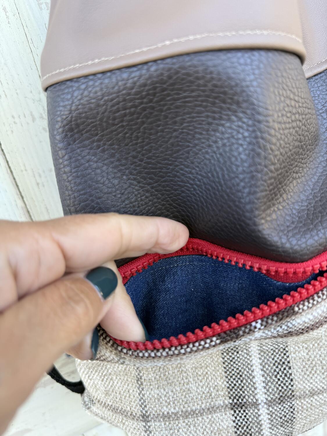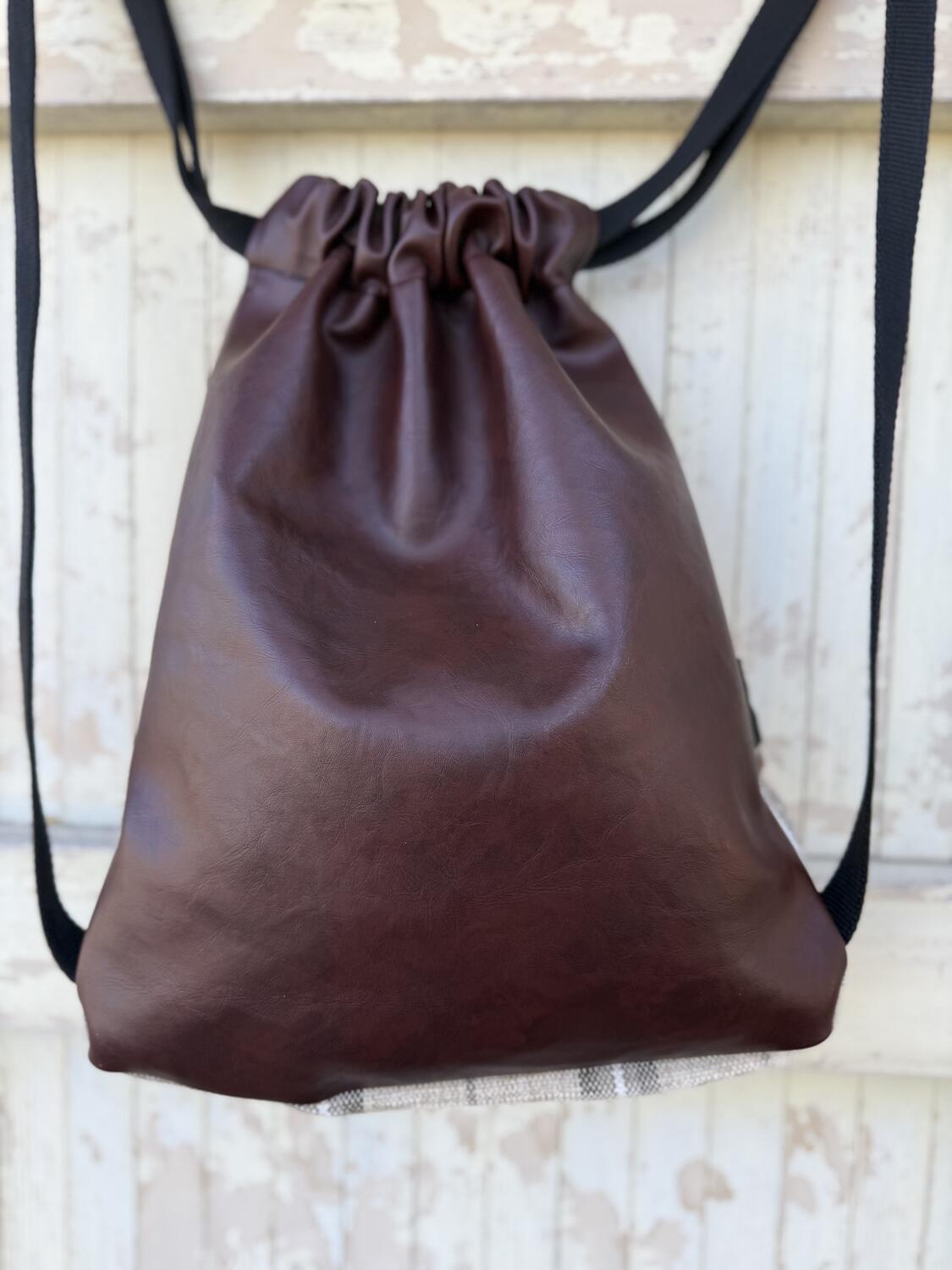 Lo zaino è realizzato tessuto di Tapezzeria e similpelle d’arredo.