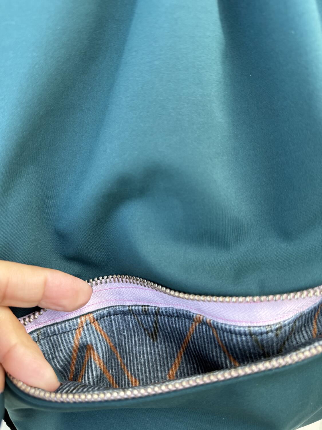 Lo zaino è realizzato tessuto tecnico da abbigliamento sportivo e similpelle